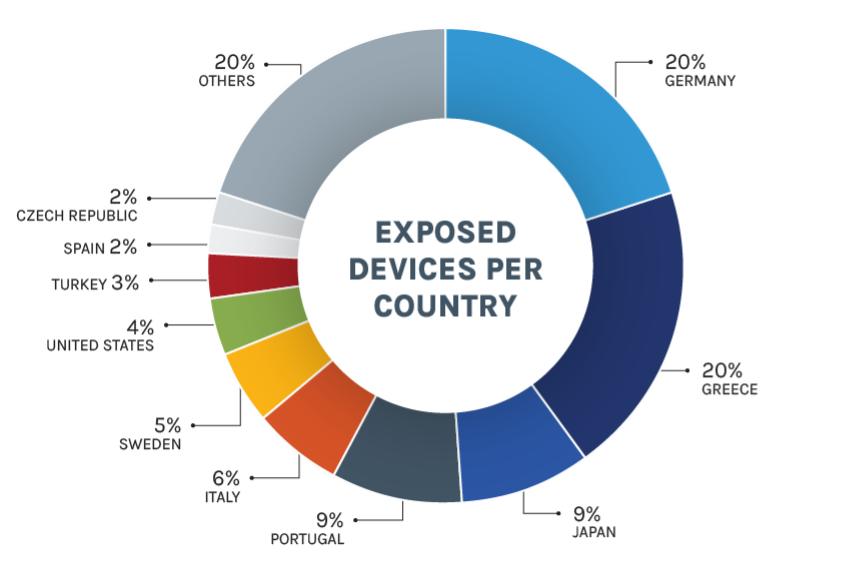 • Dies lässt darauf schließen, dass diejenigen Hersteller, deren Geräte häufiger exponiert sind, wahrscheinlich über weniger sichere Standardkonfigurationen verfügen, dass sie ihre Kunden nicht ausreichend über die Risiken öffentlich erreichbarer Geräte aufgeklärt haben oder dass ihre Geräte von Systeminstallateuren eingesetzt werden, die unsichere Konfigurationen verwenden.